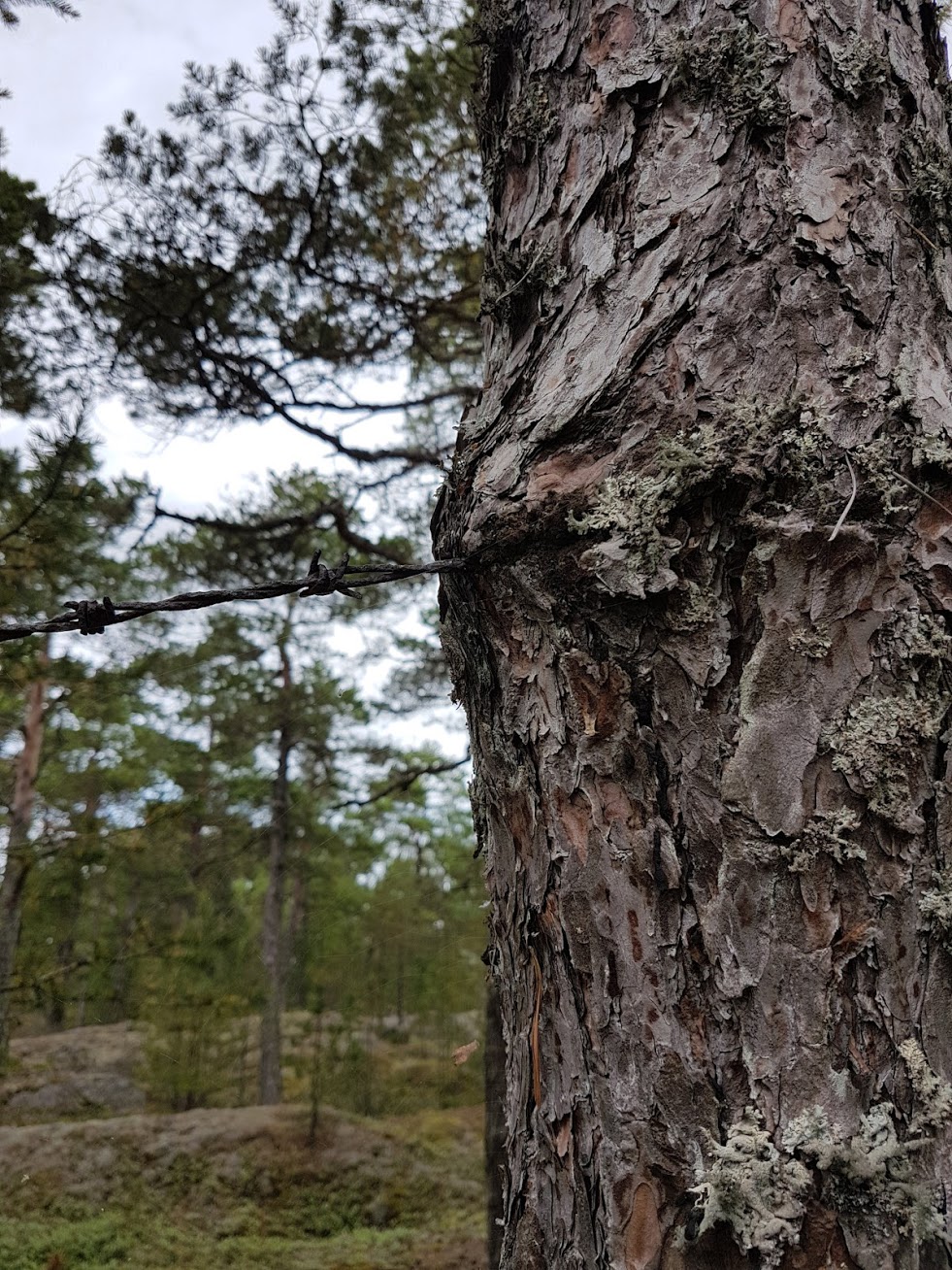 Oisko aikoinaan ollut vähän enempikin? Puu on jokatapauksessa kasvanut ja jättänyt ruadan sisälleen.