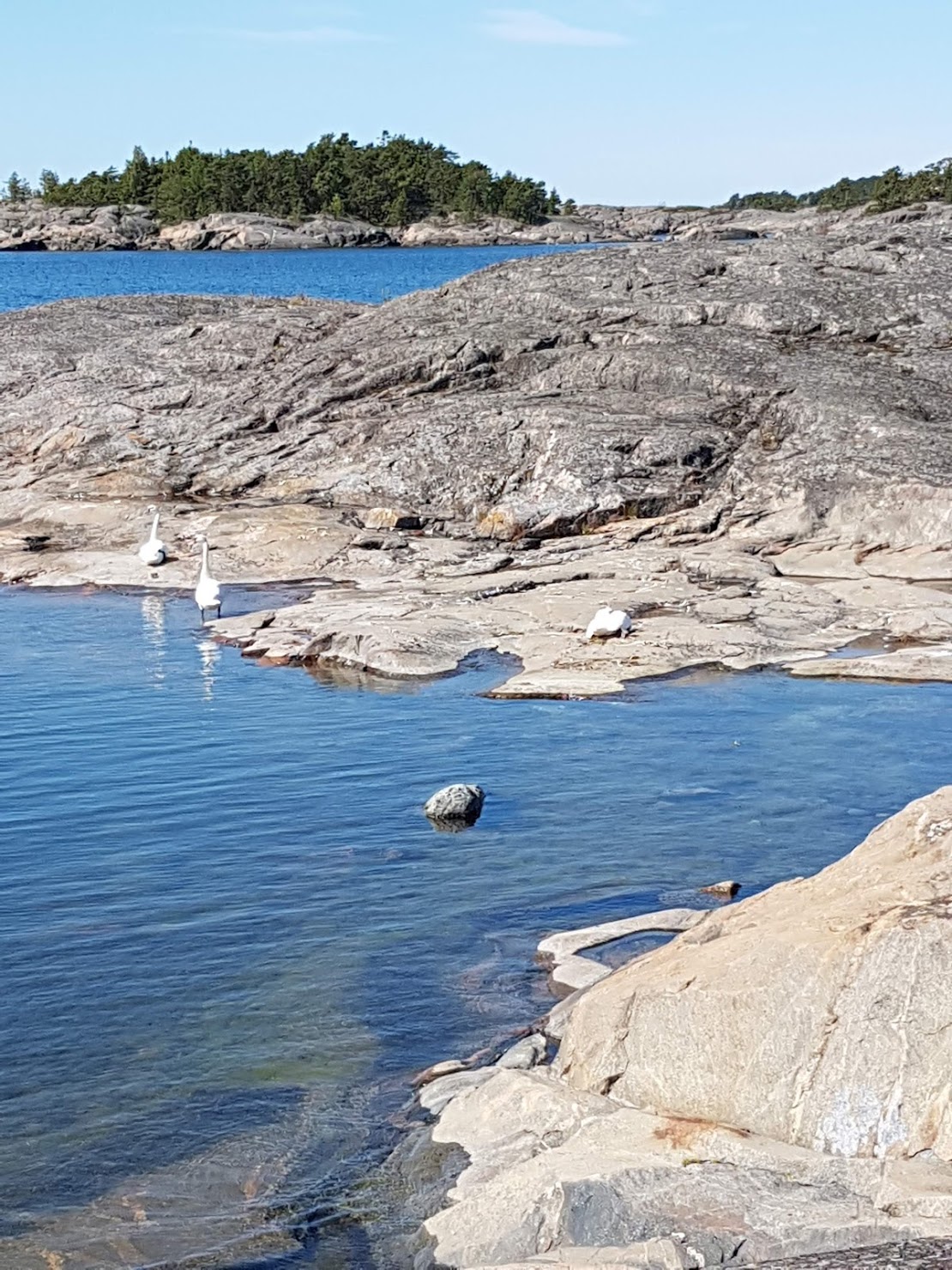 Upeikallioita. Ulkomeren puolella ovat hioituneet aika sileiksi. Liekö jäät, aallot vai mikä silottanut.