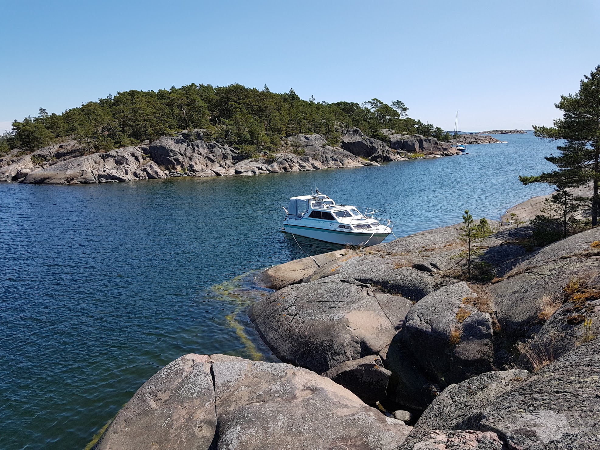 Muutama muukin venekunta on tänne kiinnittynyt, mutta ovat sen verran kaukana, ettei kannata ruveta huutelemaan.