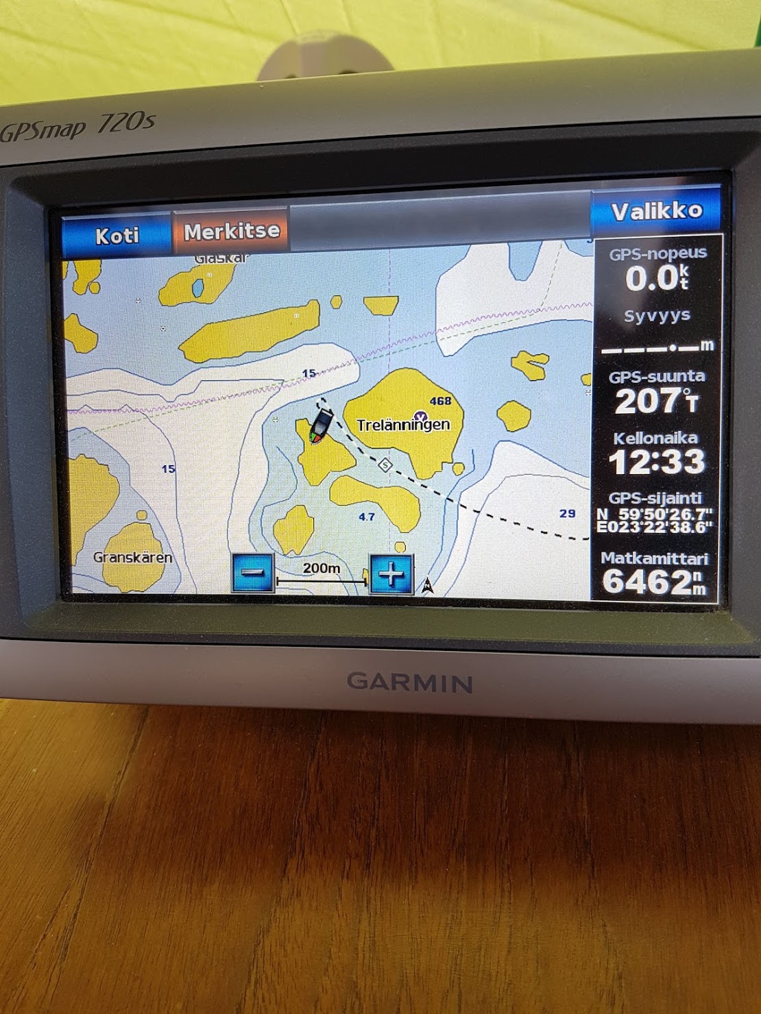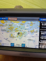Tuosta väliköstä voi ajaa isommalla veneellä, syväystä nelisen metriä koko matkalla. Tosin, enhän mä kokoajan tuijottanut plotteria.