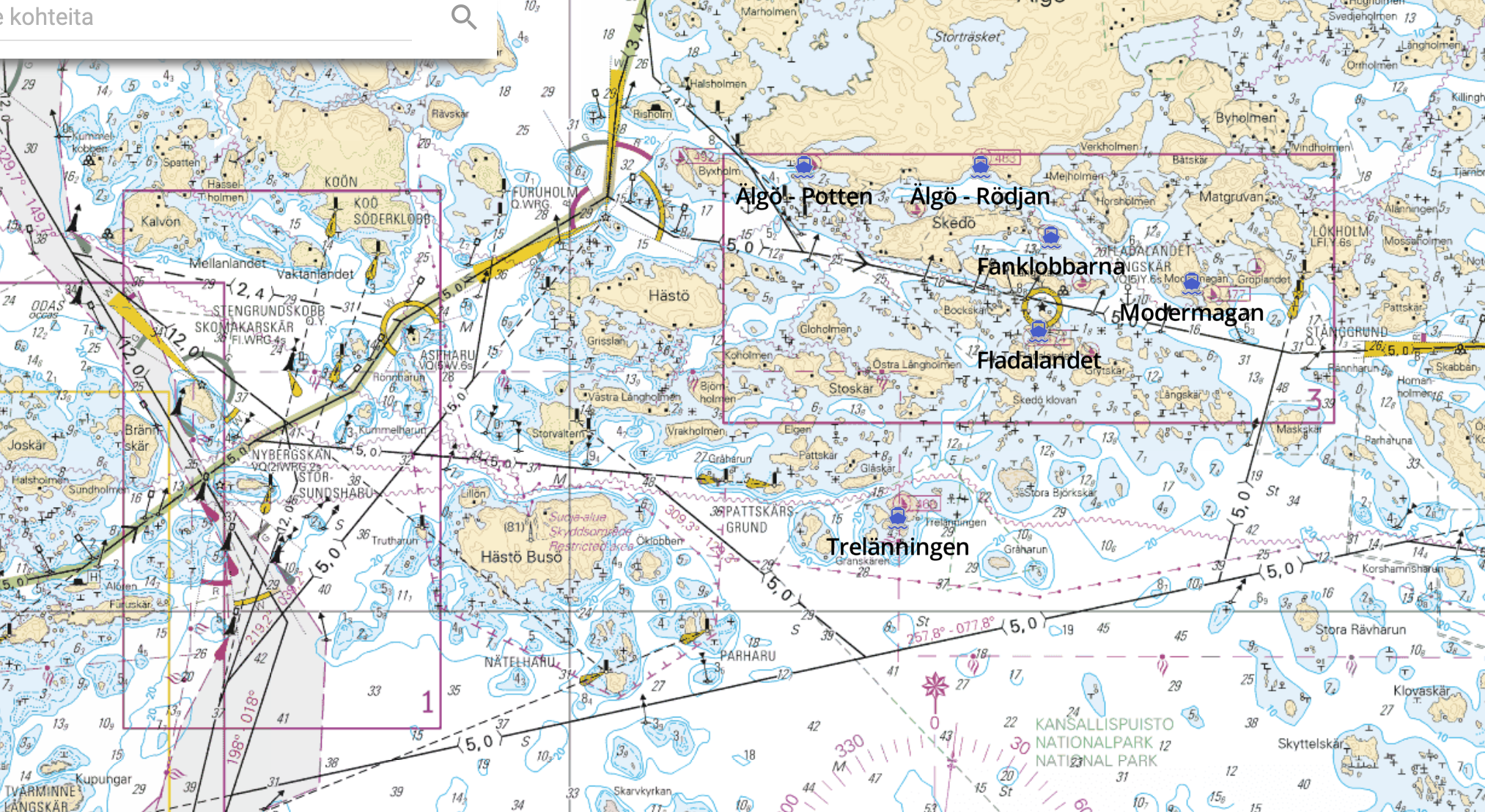 Aika ulos ovat tulleet matalilla vehkeillään. Nythän on heidän onnekseen kevyt, vain noin 5-6 m/s tuulta, joten ei nosta isoa aallokkoa. Ja iehän tästä kuitenkaan niin pitkä matka ole saarten suojassa sisäväylälle.