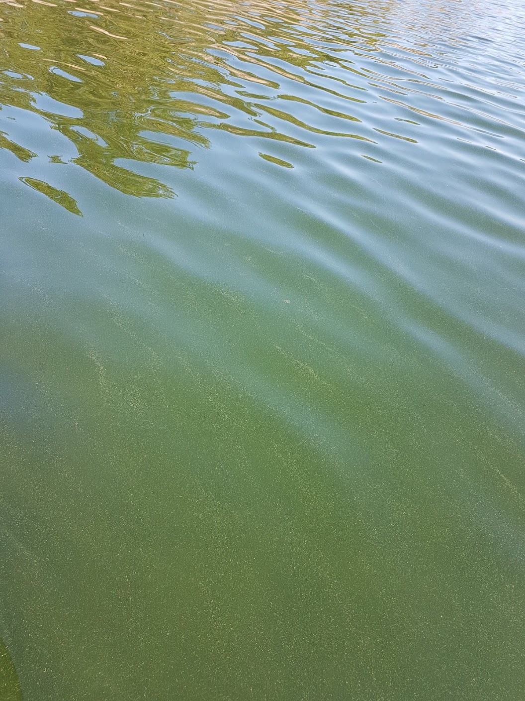 Aamuisessa paikassa oli jo jonkin verran sinilevää ja näkyy hivenen täälläkin, mutta ei ihan noin paljon.