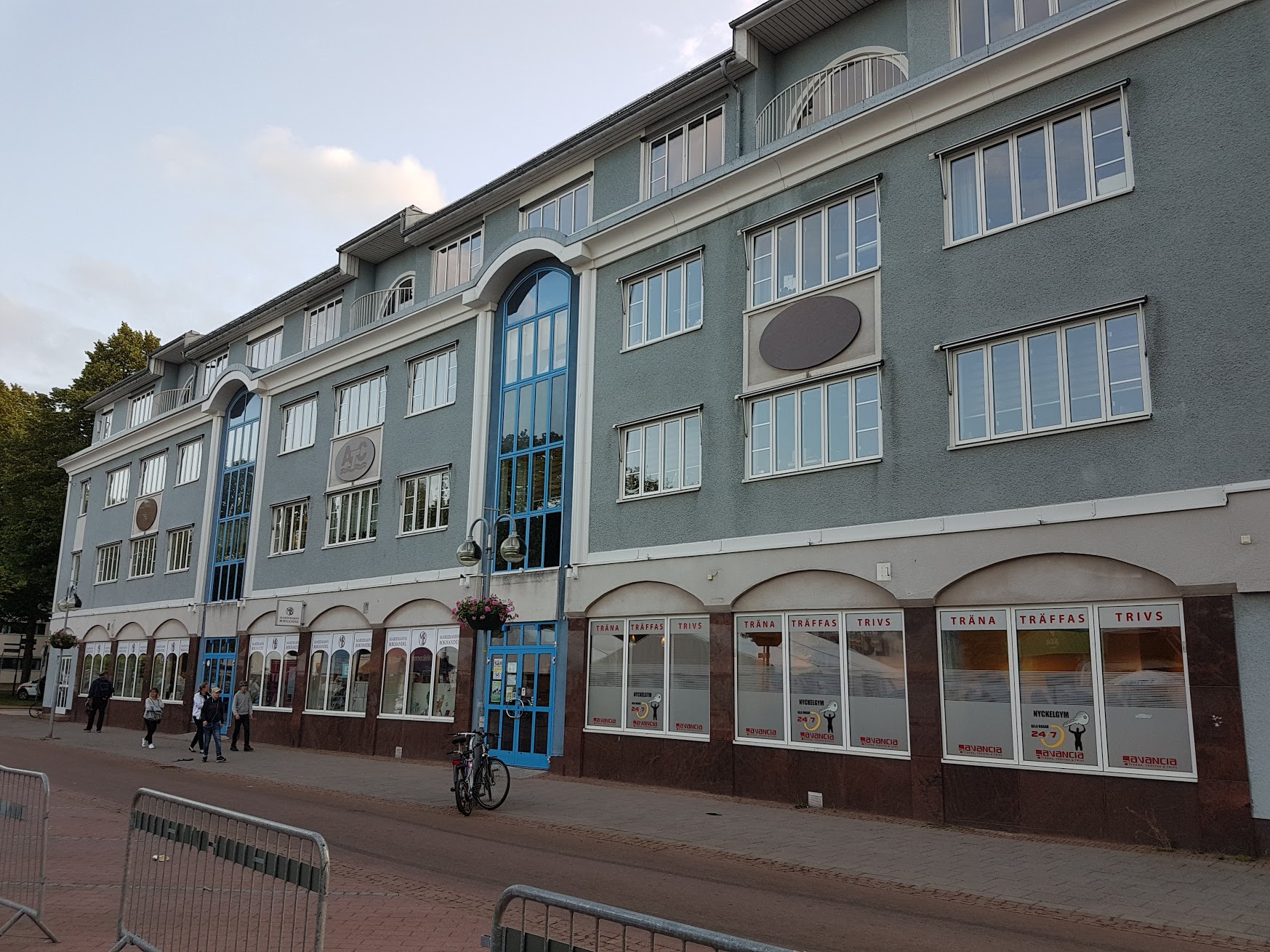 Festarialueen vastakkaisella puolella on tosi hyvänäköinen rakennus.