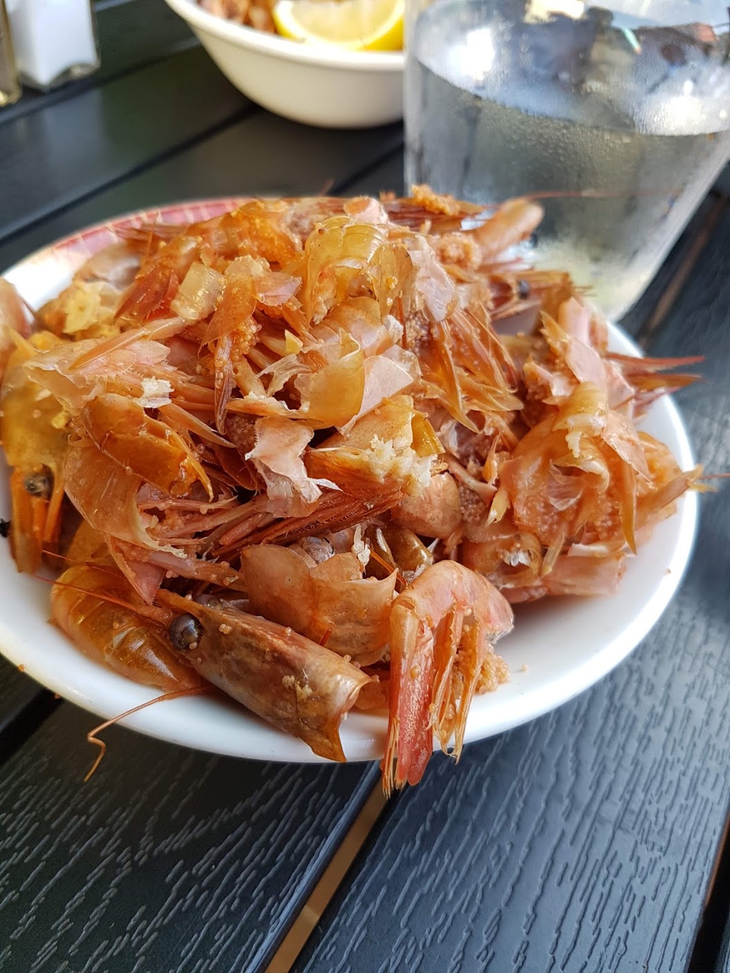 Alkuun otimme savustetut katkaravut, jotka mielestäni olivat todella hyviä. Madam valitteli suolan runsasta määrää.