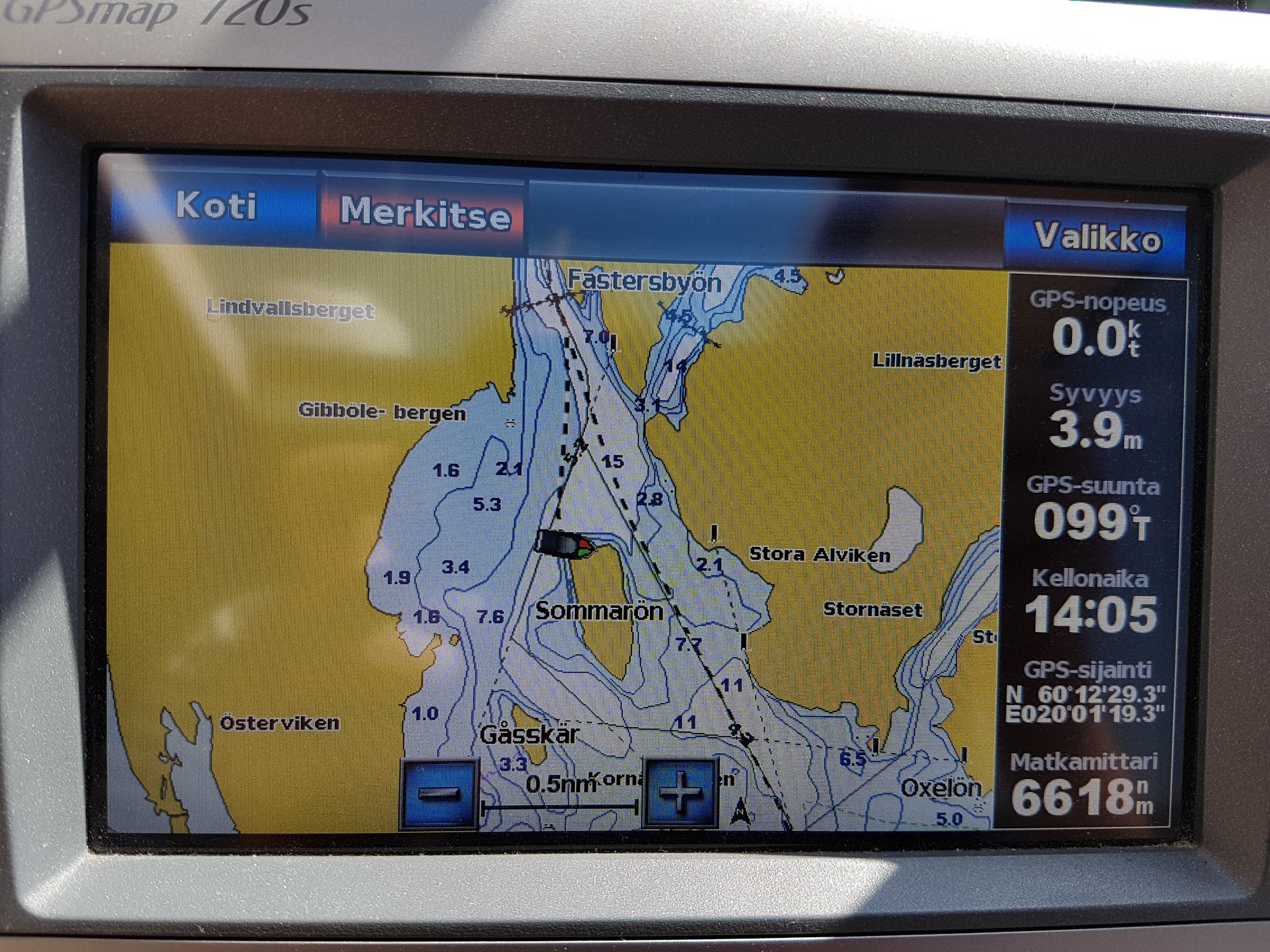 Hiljaa köröteltiin vain 5 mailia, ja parkeerattiin , ties monennenko Suomalaisen Sommarön rantaan. Tämä on väylia risteyskohdassa, mutta oletettiin , että ei täällä nyt niin kauhia trafiikki ole. Eikä ollut.
