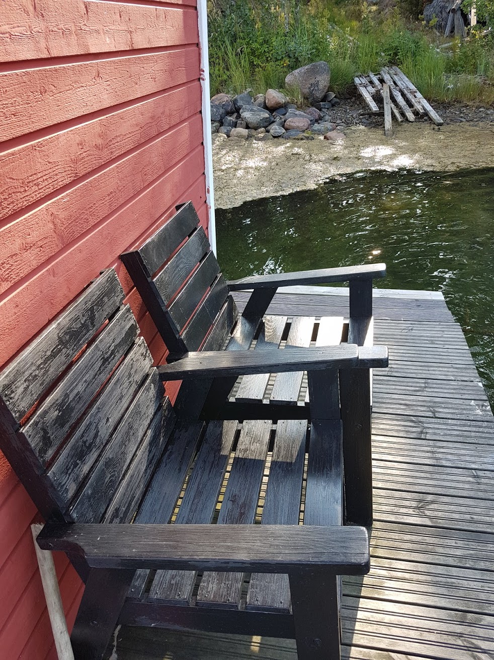 Sauna pitää ihan ite lämmittää, vedet kantaa mäeltä, kaivosta ensin käsipelillä pumpata, huh huh, onneksi pääsee hiet hikoilemaan lauteilla pois.
