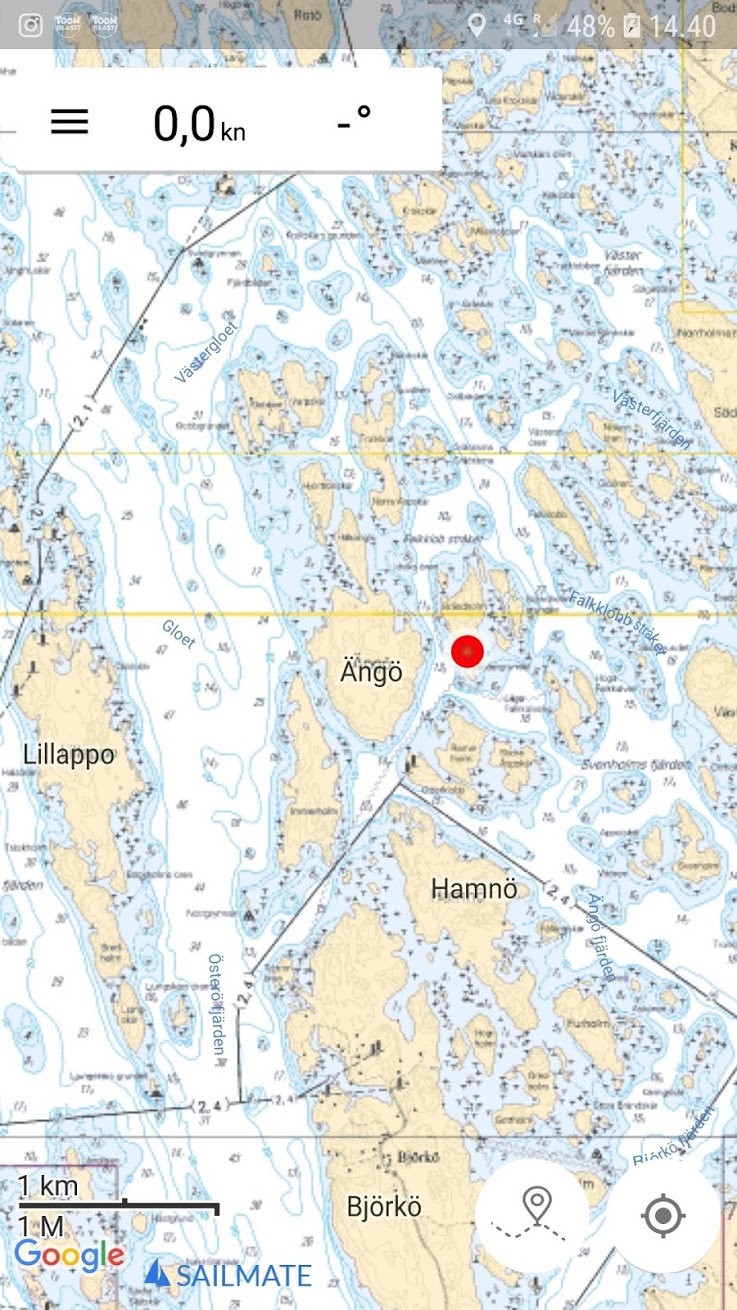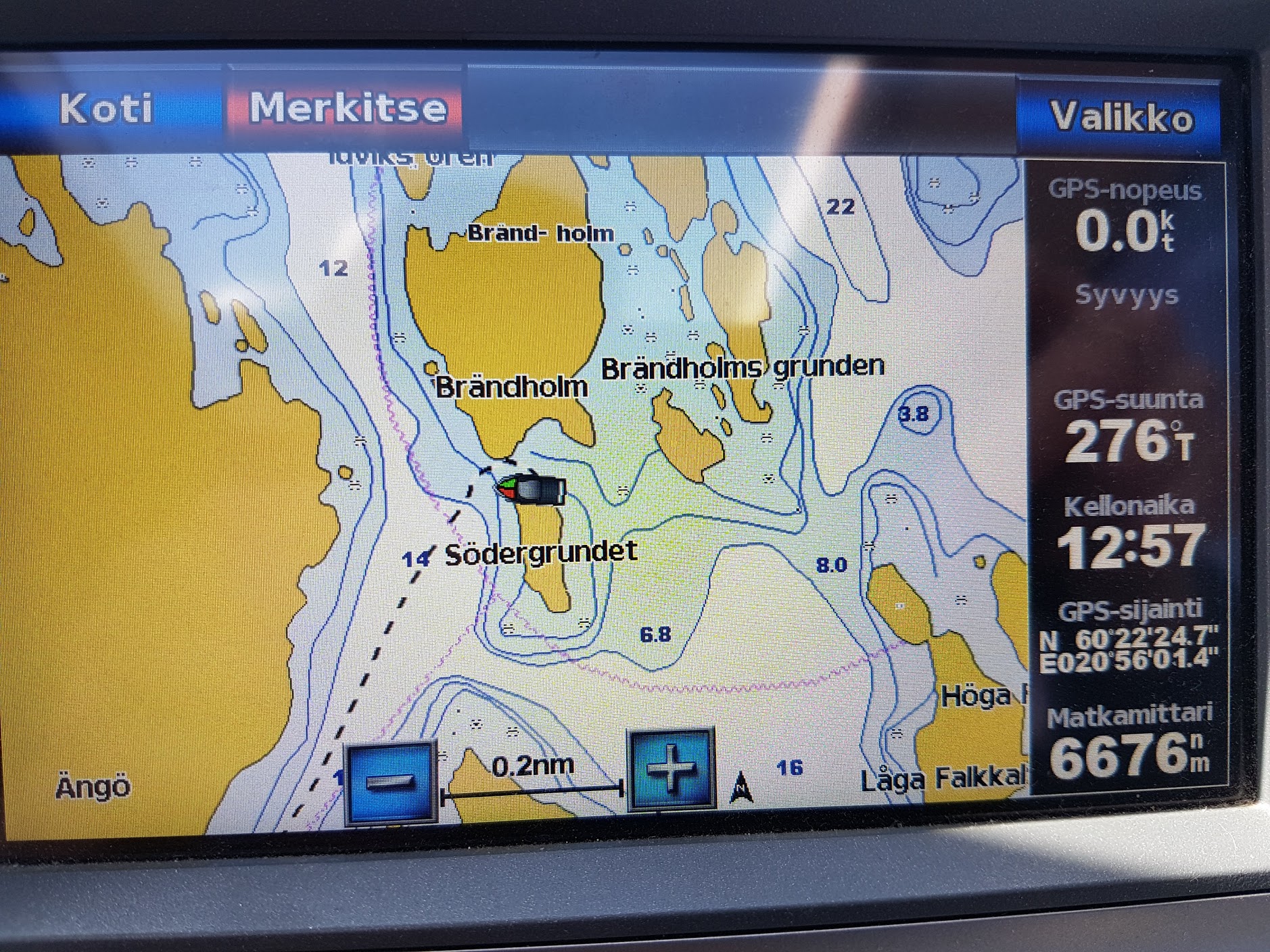 Syvyyttä peränpuolella on parin metrin luokkaa. Tuo meidän syvyyttä mittaava anturi elää ihan omaa elämäänsä. Välillä toimii tai sit ei toimi.