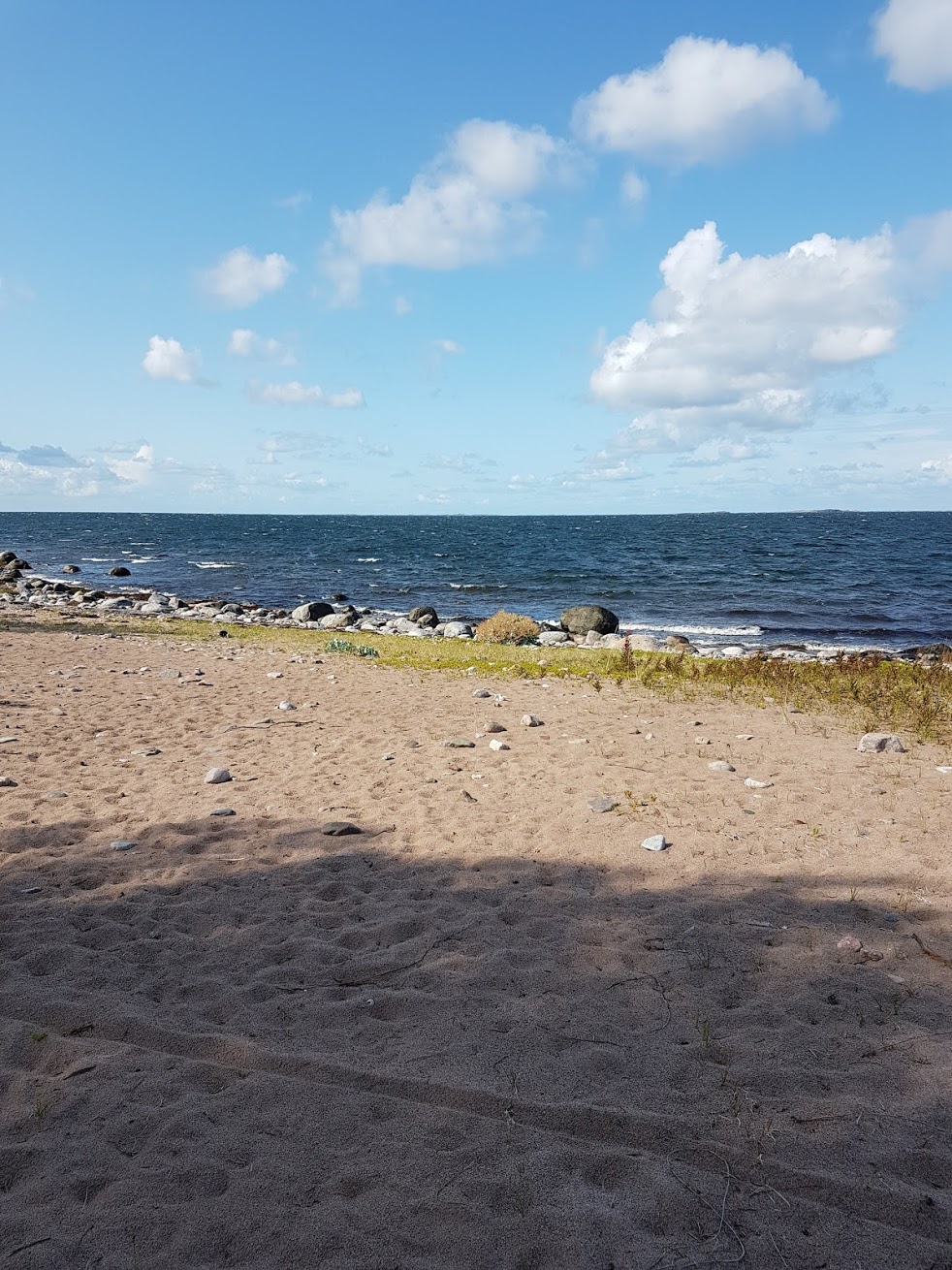 Käytiin Sirpalle näyttämässä avomeren puoli saaresta. Pitkä hiekkaranta, jossa kuitenkin meressä kiviä, joten ei hyvä uimapaikka.