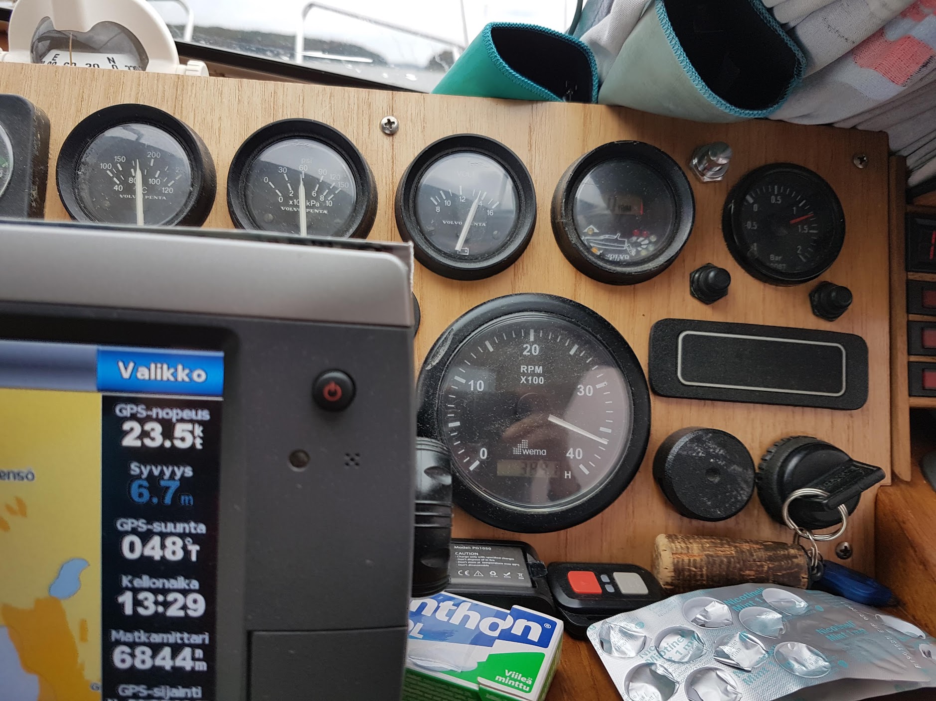 Meillä tämän päivän matkamittariin tuli 45 mailia ja Kasnäsistä aikaa kului Tammisaareen 2 tuntia 10 minuuttia satama-ajoineen. Länsituuli oli noin 7-9 m/s, joten nyt oli välillä vähän pomppuista. Isommat aallot reilusti yli metrin.