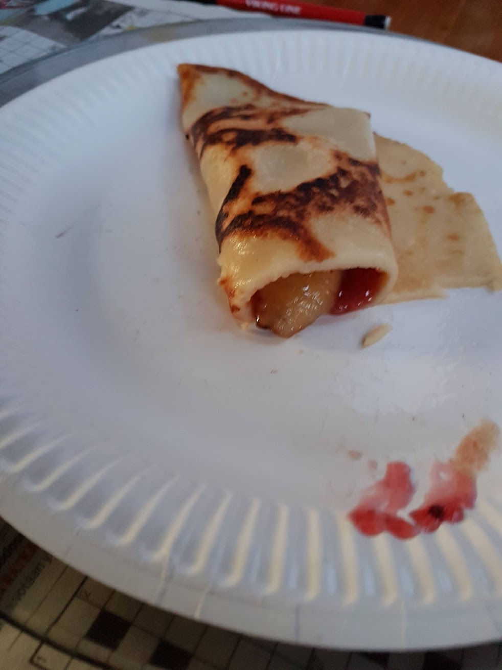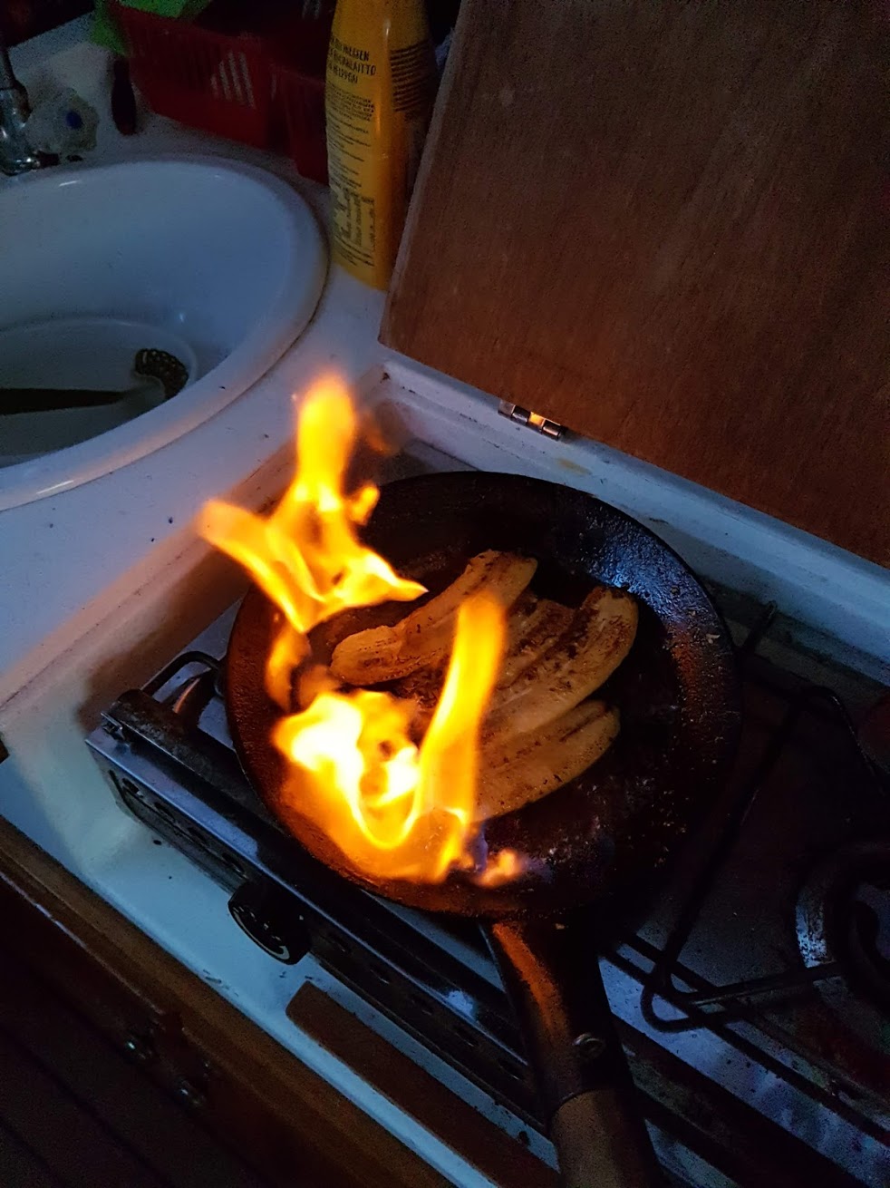 Illalla huomasimme, että hedelmät eivät riitä smoothin tekoon, joten paistoin letut ja sen ainoan banaanin flambeerasin.