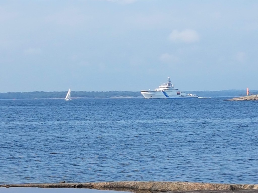 Huilitaukoa kun pideltiin, tuli idästä rannikkovartioston laiva, ja arvuuttelin, miten purkkarin käy.