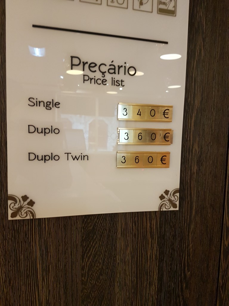 Hinnat olivat kohillaan, toki emme ihan tuommoista hintaa kuudelta yöltä (2160.-) maksaneet, mitä lista kertoo. Meidän hinta oli karvan yli 500.- € veroineen, joten kohtuutarjous saatiin, kun ei ole bestseason-aika enää.