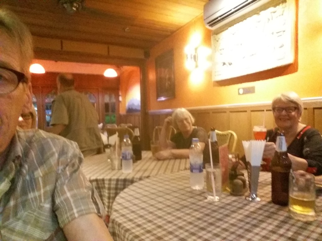 Heti tämän kuvan oton jälkeen, meni koko kadulta sähköt. Jo tänne Suomalaiseen ravintolaan tullessamme meille omistaja manaili, kun sähköt temppuilee. Pitäis kuulemma tulla ns kolmivaiheisena, mutta yksi on pudonnut pois, jolloin mm ilmastointi ei toiminut. Olivat jo jonkin aikaa sähkärit yrittäneet paikallistaa vikaa.