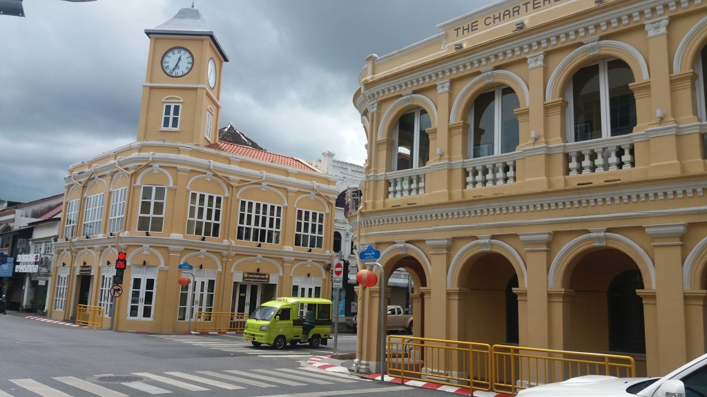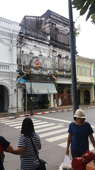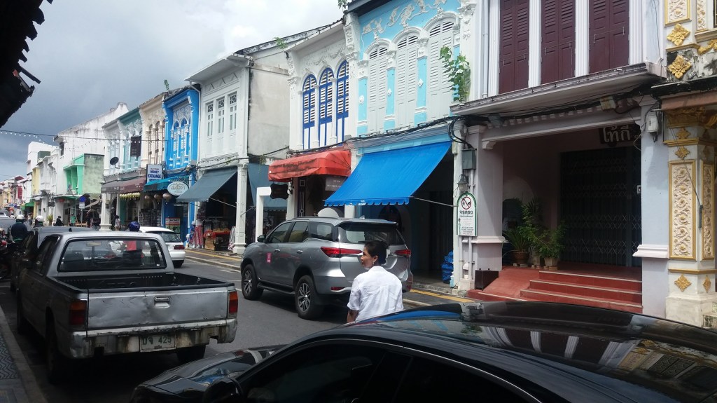 Koska Finnairin koneen teknisen vian vuoksi meiltä meni se tulopäivä Phuket Townissa pieleen, päätimme lähteä sinne nyt. Hotelli oli järkännyt pikkubussin, Hiacen, ja meidän lisäksi kyytiin tuli kuusi muuta matkailijaa. Ensimmäiset se pudotti Kata beachille, ja jos muihin rantakohteisiin, Karon tai Patong beach, olisi ollut meniöitä, olisi bussi kiertänyt niiden kautta. Nyt se suuntasikin oikaisten suoraan Towniin. Me saatiin siis perilläoloaikaa melkeenpä tunti enempi. Hyvät meille.