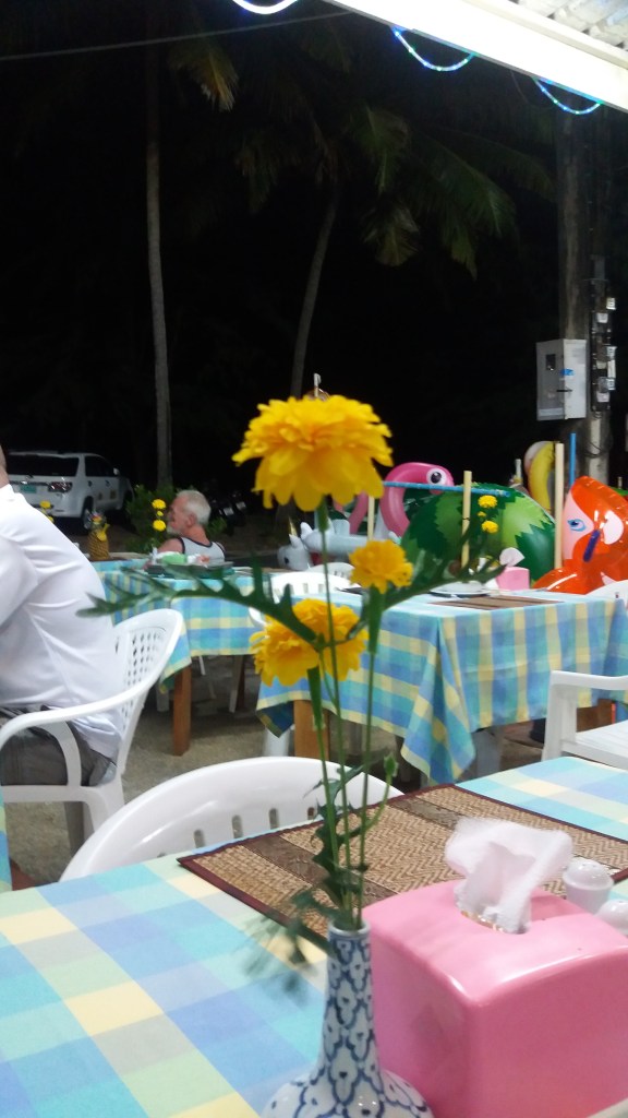 Oltiin illallalla aateltu mennä katsastamaan auringonlaskua, kun tuollainen hyvä näköalapaikkakin ois tuossa kiven heiton päässä, tosin tuktukilla sinne kiivettäis, mutta kun ajankohta läheni ja taivaanrantaa tutkailin, oli harmillisesti pilviä juurikin auringon ja meidän välissä. Täytyypi jäädä odotuskannalle, onneksi on vielä pari iltaa jäljellä.