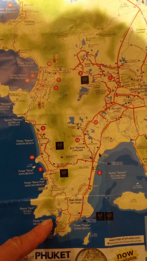 Niin sai Patongit jäädä. Tilattiin respasta taxi, joka tulikin aika nopsaan. Oli iso Toyota henkilöauto eikä mikään paku tms. Oli sillä hyvä takapenkillä huristella ison johtajan tyyliin kohti saaren eteläisintä rantaa.