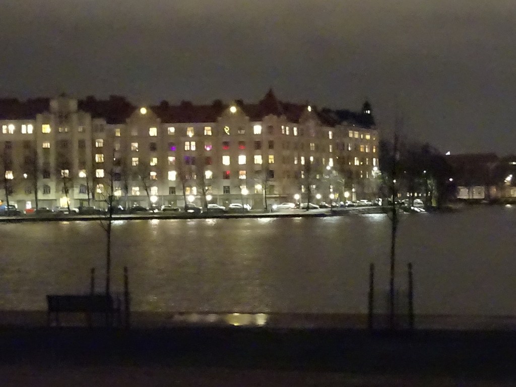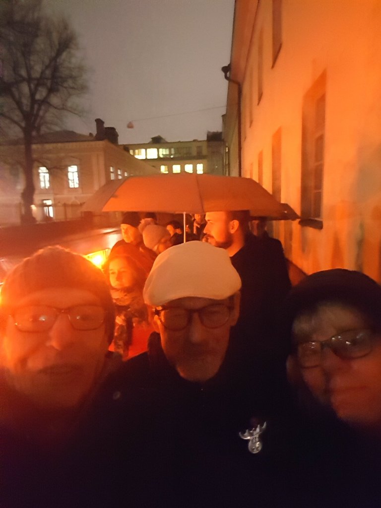 Tuonne sitten parkkeerasivat torin itäreunalle, tehden oman sinisen sävyisen valoilmiönsä. Emme menneet kyselemään kuka vastasi tuosta ”teoksesta”, koska sitä ei ennakkotiedoissa ollut mitään mainintaa. No, se on sitä kaupungin ”tilannetaidetta”.