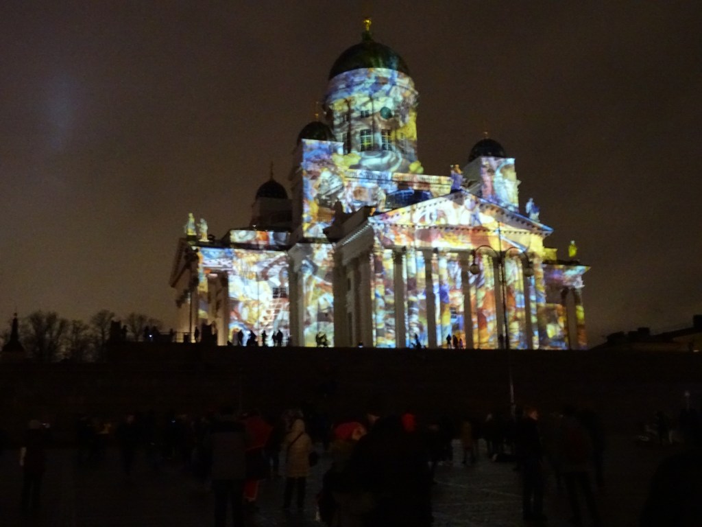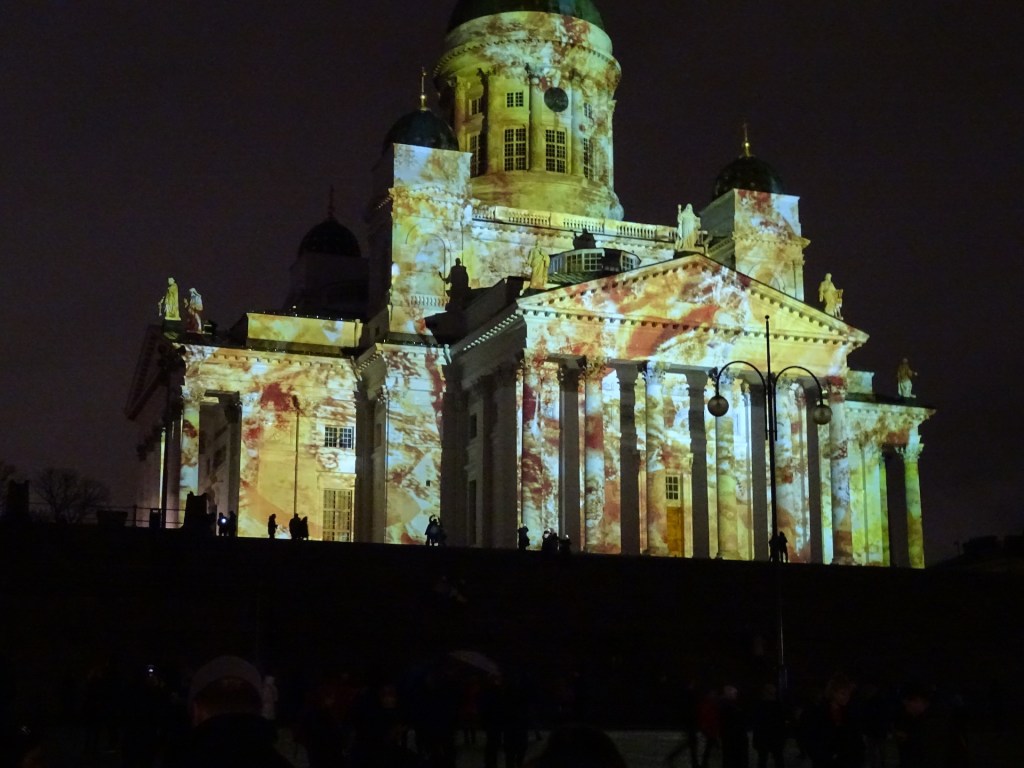 Perinteisesti Tuomiokirkosta tämä valoshow alkaa, joka nyt oli saanut pienen pieniä yksityiskohtia täynnä olevan muuttuvan valaistuksen. SunWind teoksesta vastasi Teresa Mar.