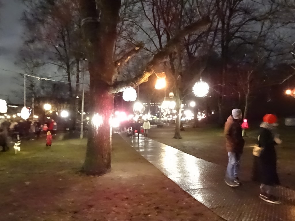 Päästiin kuin päästiinkiin turvallisesti Kaisaniemen puistoon, jonne oli rakennettu isompana kuin edellisinä vuosina, Lyhtypuisto.