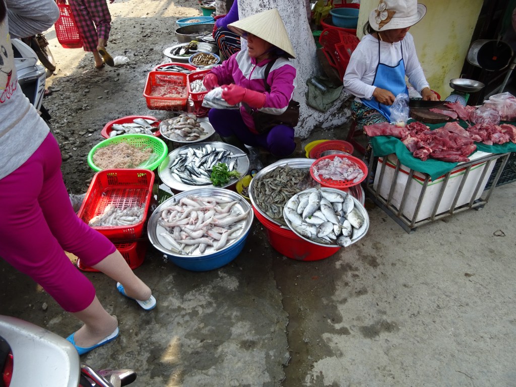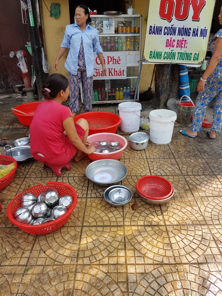 Aivan tuossa vieressä oli myös paikallisille tarkoitettu ravintola ja sen tiski hoidettiin jalkakäytävällä, kuten täällä näköjään kuuluukin tehdä. Oli sentää kivetys, etteivät ihan hiekalla tehneet, niin kuin kalakaupan tuotteet olivat, osittain hiekalla.