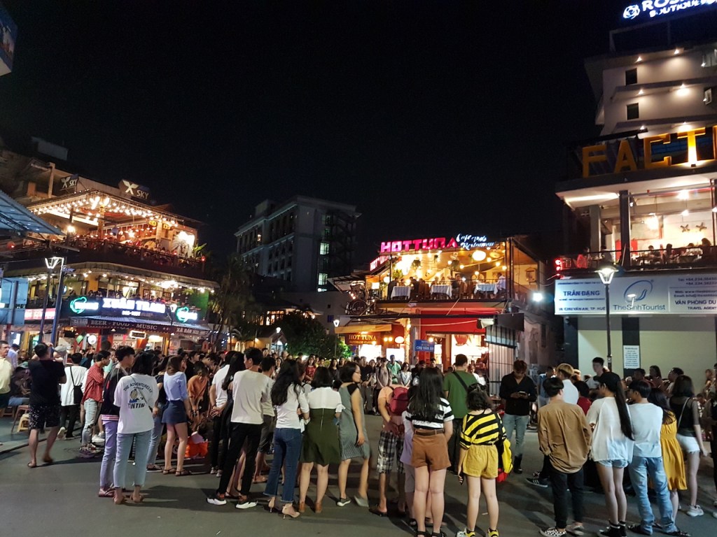 Siispä menimme jo tutuksi tulleelle ravintolakadulle, jossa myöskin oli melkoinen meno.