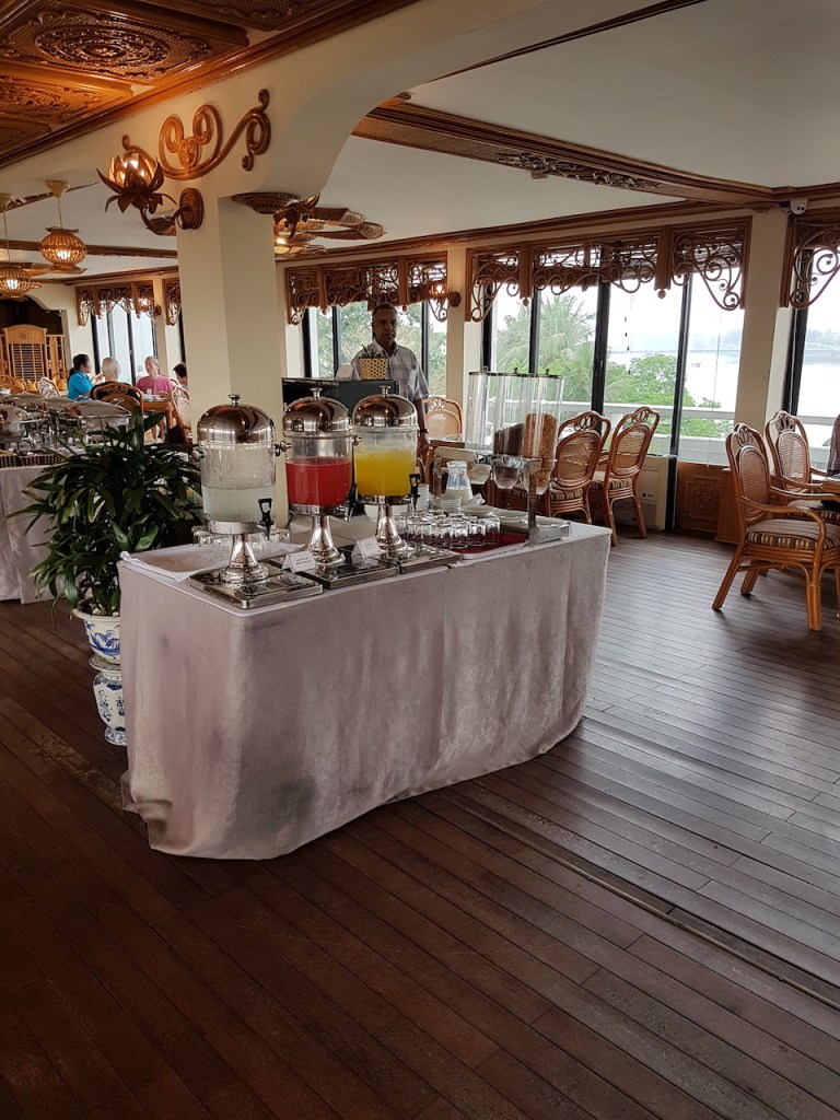 Koska meidän vakioravintolamme oli edelleen koristeltuna bileisiin, olikin aamupalan tarjoilut ylimmän kerroksen ravintolassa. Ja se oli upea.