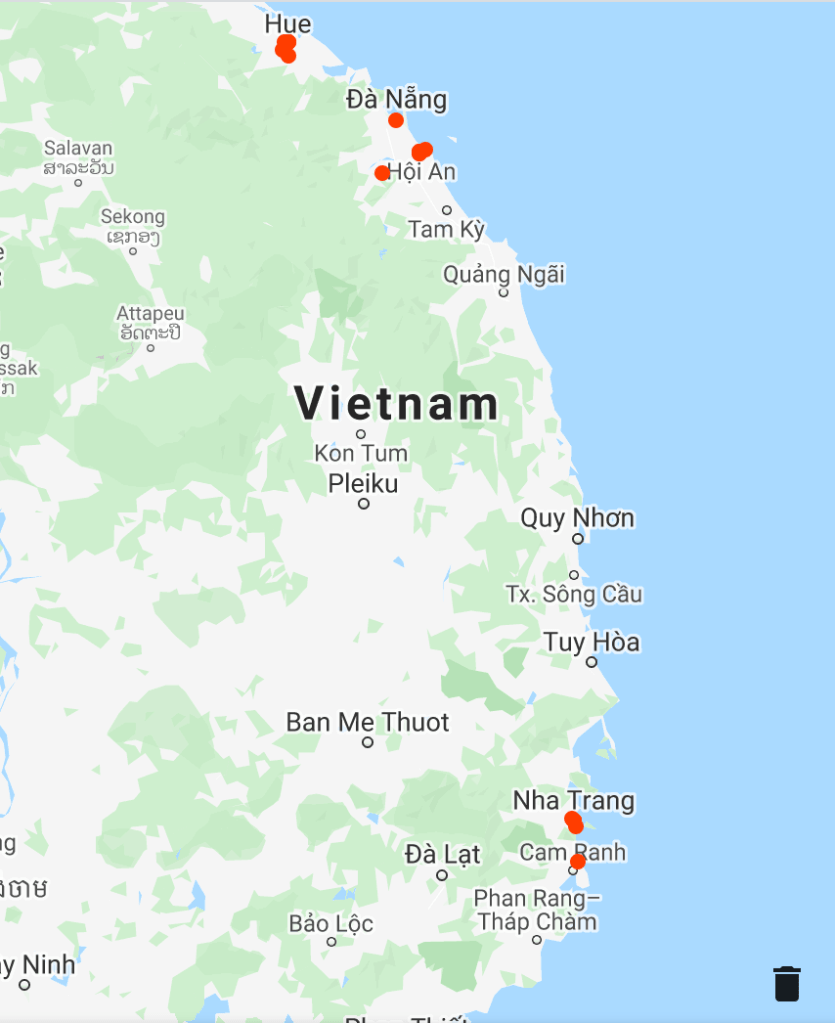 Meidän on mentävä ensin Da Nángiin, jossa on lentokenttä, päästäksemme jatkamaan sitten matkaa etelämmäs, Nha Trang’iin, ja sieltä edelleen Phan Thiet’iin.