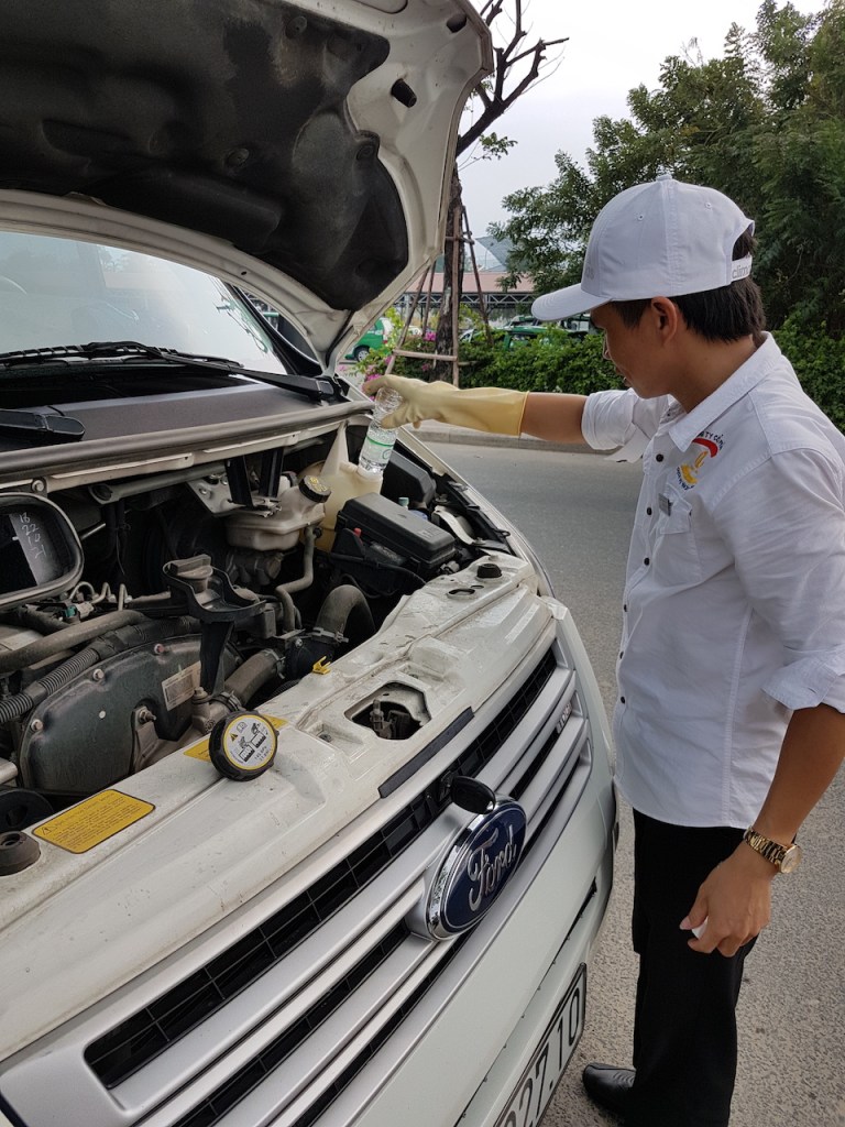 Vaikka auto oli mielestäni kohtuullisen uusi, alkoi lämmöt nousta ja kuski joutui pysähtymään. Soitteli muutamaan paikkaan ja sai ilmeisesti ohjeet. Onneksi autossa oli vesipulloja, joista sitten lutrattiin syylariin viitisen litraa eli kymmenkunta pulloa. Ja niin matka jatkui.