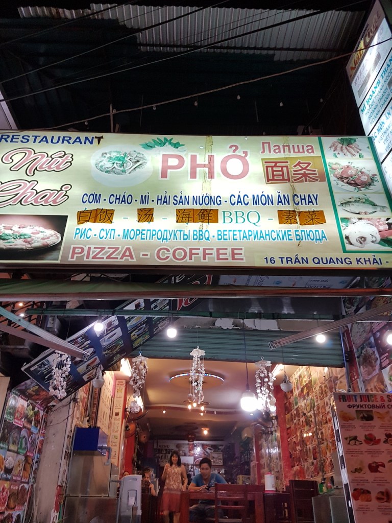 Lähistöllä oli kymmenittäin paikkoja, joten valinta ei ollut helppo. Se, mikä pisti heti silmään, oli venäjänkieliset tekstit mainoksissa ravintoloissa. Ja listatkin olivat myös venäjäksi.