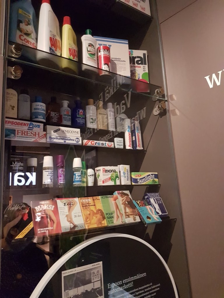 Oli aikakausilta kauppatavaroita, jotka oikeastaan kaikki olivat tutun näköisiä. Joko lapsuudesta tai nuoruudesta. Jopa tuon Vexi-marketin kassin muistan hyvin.