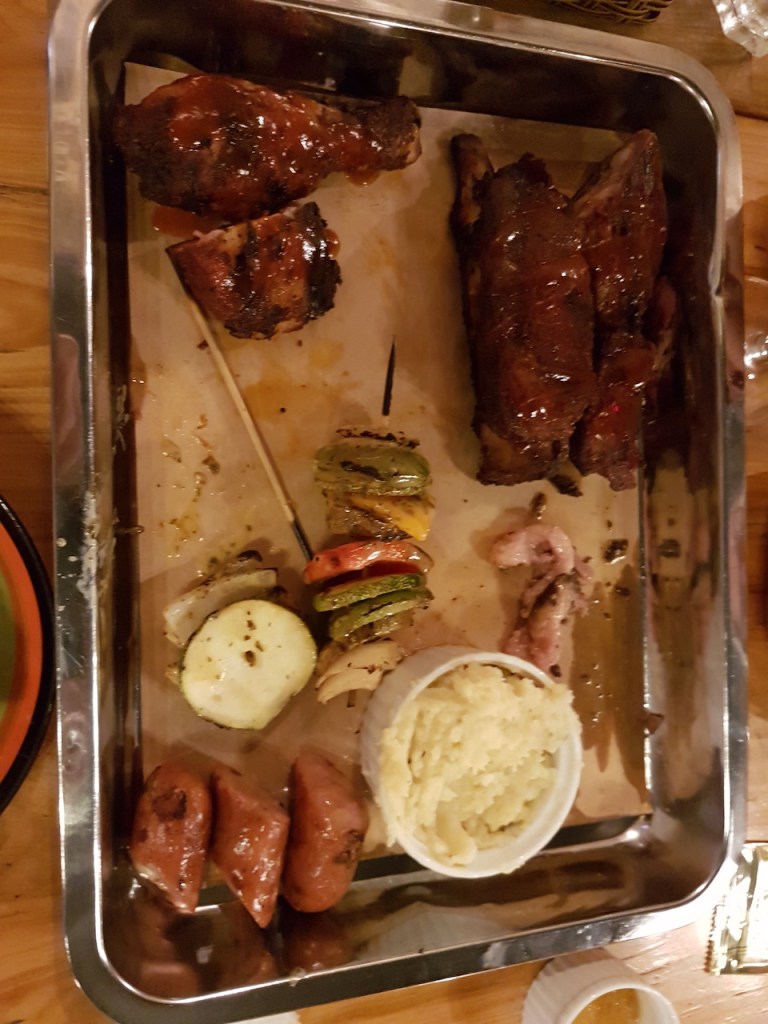 Kaikki nimensä mukaisesti grillattiin, hiilellä. Maku oli maukasta, mausteena grillikastikkeet, joilla grillattavat valellaan. Vähän turhan tuhtia näin illalla ja kun lämpöä vieläkin riittää. Eihän täällä lämpötila yöksikään mihinkään laske.