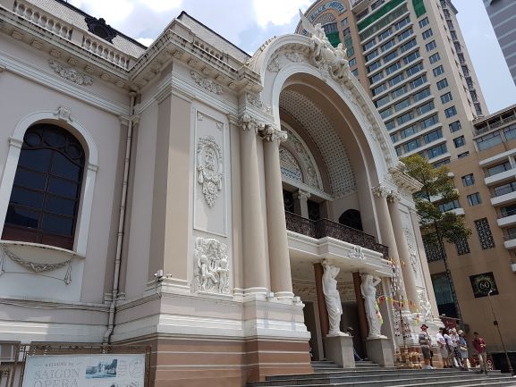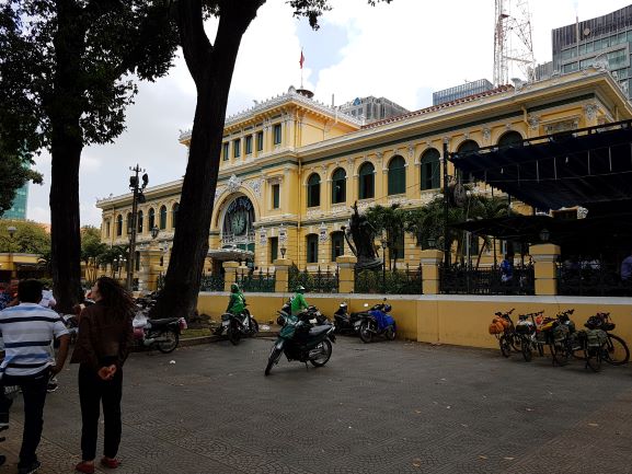 Käsittääkseni taustalla oleva hallintorakennus, People’s Committee Building , on ranskalisten rakentama joskun 1800-luvun loppupuolella. Edelleen hallintokäytössä.