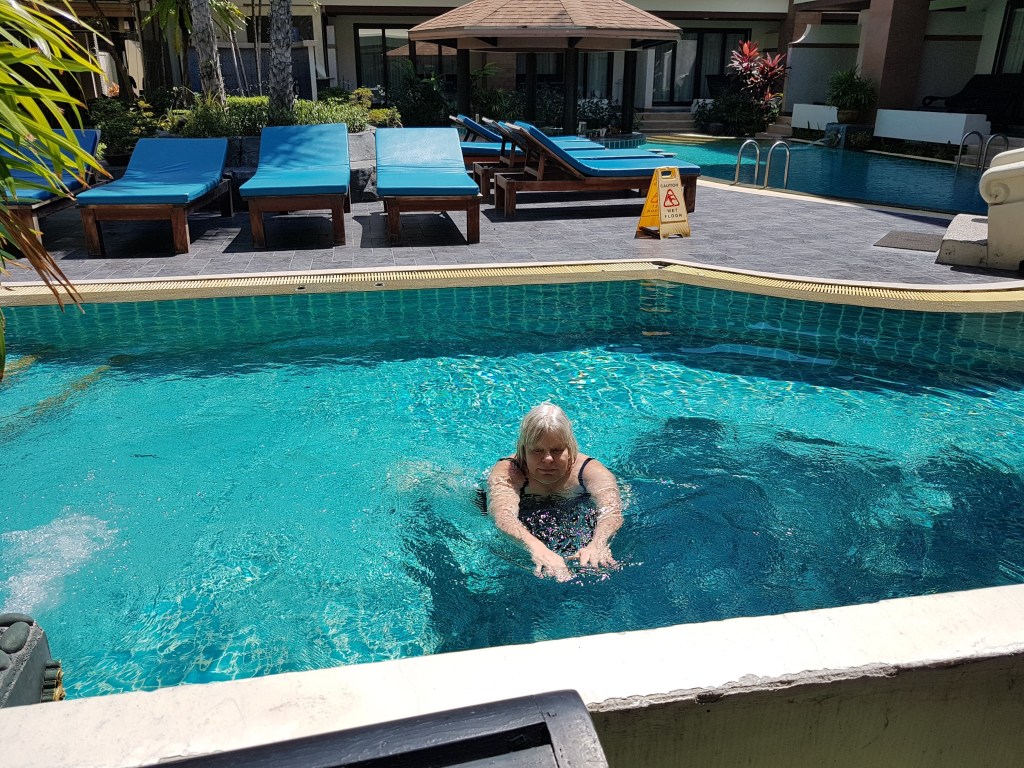 Tämä onkin viimeinen päivä tällä saarella, siksipä altaassa nauttimisesta pitää ottaa kaikki nautinto. Se on niin mukava pulahtaa patiolta suoraan veteen.