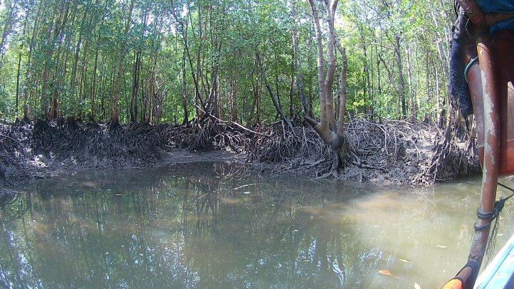 Aamupalan jälkeen, sovitusti, tultiin hakemaan retkelle. Haettiin vielä kolme muutakin mukaan, ja hedelmäkaupan kautta lähemmäs Mangrove-aluetta. Jonkin sortin jokisuistoa ja sitä tuntui olevan laajalla alueella.