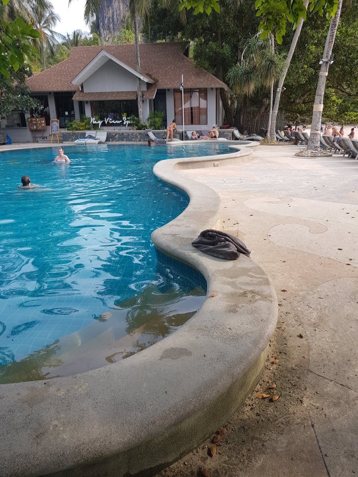 Sinne jäikin suurin osa veneen matkustajista. Siitä jatkettiin meidän kohteeseen, Railay beach’ille. Onneksi olivat laiturin tehneet, ettei tarvinnut mihinkään hiekkarannalle hypätä. Olimme ainuat tänne jäävät. Loput matkasivat Ao Nangiin, joka onkin tämän lähialueen isoin rantakohde.