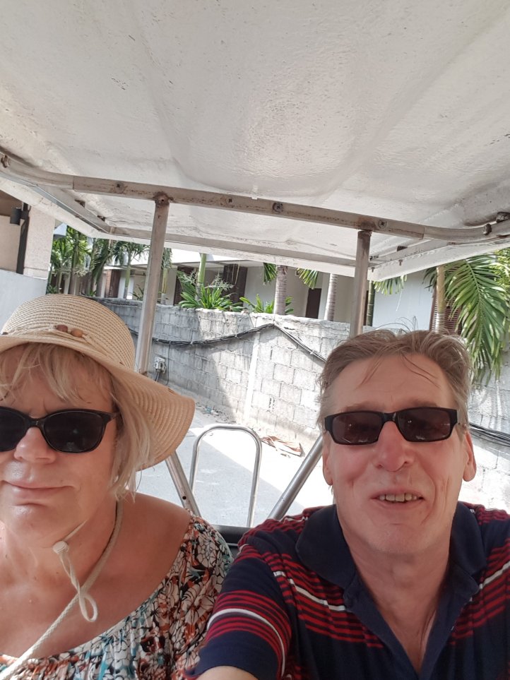 Mutta tänään alkoi tapahtumaan. Aamupalan jälkeen pakattiin kimpsut ja kampsut kasaan ja luovutettiin bungalow pois. Taxi tuli melkeimpä sovittuun aikaan hakemaan kyydissään jo pari henkilöä. Mutta vielä tuli neljä lisää kahdestakin osoitteesta, joten meitä oli pickupin kyydissä lavalla kahdeksan inehmoa. Sopu sijaa antaa. Kaksi tyttöstä olivat Suomalaisia, joiden lento lähtee nyt torstaina. Ja kyllä, joutuvat kahden viikon karanteeniin, kun kotiinsa pääsevät.