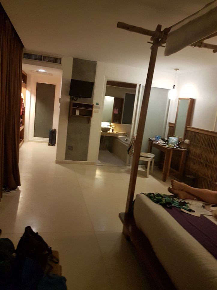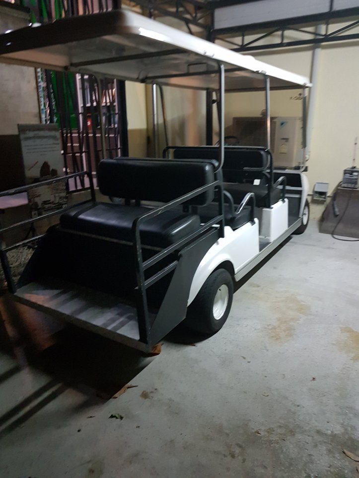 Muutaman kymmenen metrin päästä saavuttiin golf-auton näköisen menopelin luokse, jonka kyydissä sitten huristelimme vastaanottoon. Paperihommat tehtyämme, tervetuliaisjuomat juotuamme, samainen kuski vei meidät samalla menopelillä bungalowillemme. Joka muuten olikin aika kaukana respasta.