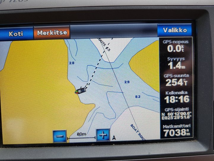 Tähän voi tulla purkkarillakin, koska meilla kaikuanturi veneen keskikohdan etupuolella.