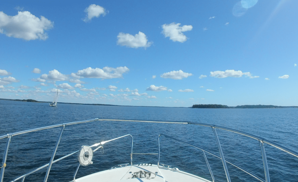 Käryt jäävät veneen ulkopuolelle ja maisemassakaan ei ole valittamista.