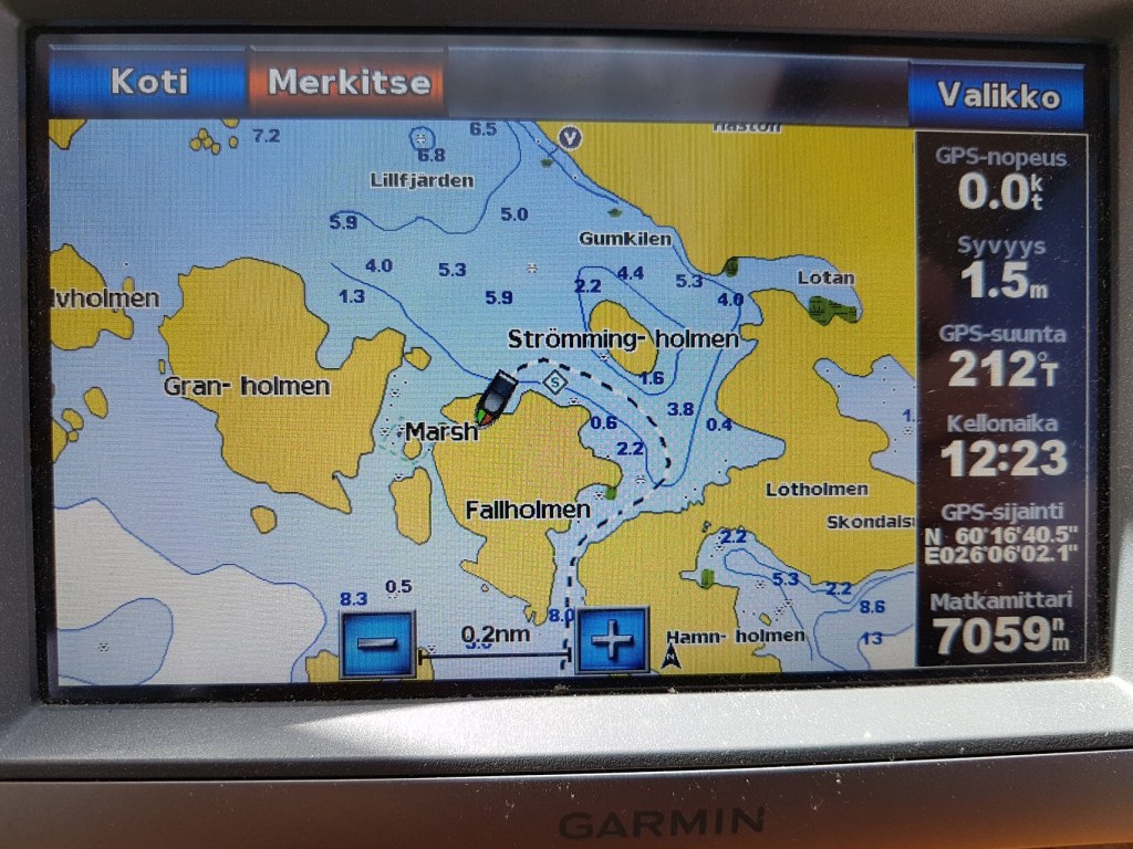 Meidän vakipaikka täällä Lillfjärdenissä oli onneksemme vapaana, joten siihen parkkeerasimme Sarzan.