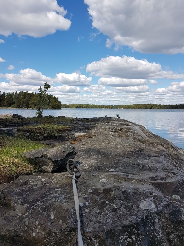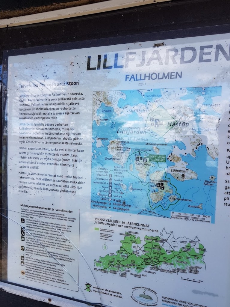 Alueeseen kuuluu veneestämme pohjoisen puolella, Hästön, paikka, jossa laituri ja paremmat fasiliteetit. Kerran käyty, mutta silloinkaan ei jääty yöksi. Synkkä metsikkö? eikä kallioita, joihin me olemme tottuneet. Vanhat fossiilit kun ollaan ; – )