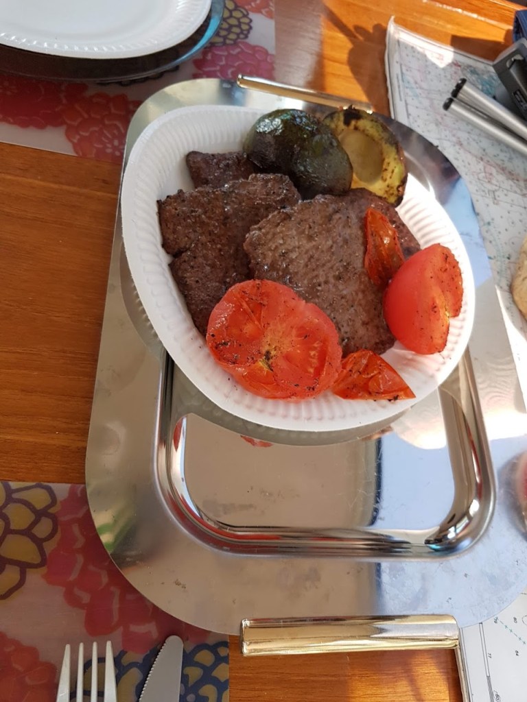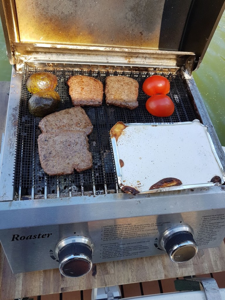Ruuaksi tänään tein grillissä naudan raakajauhelihapihvit, juureksia, avokadoa ja tomaattia.