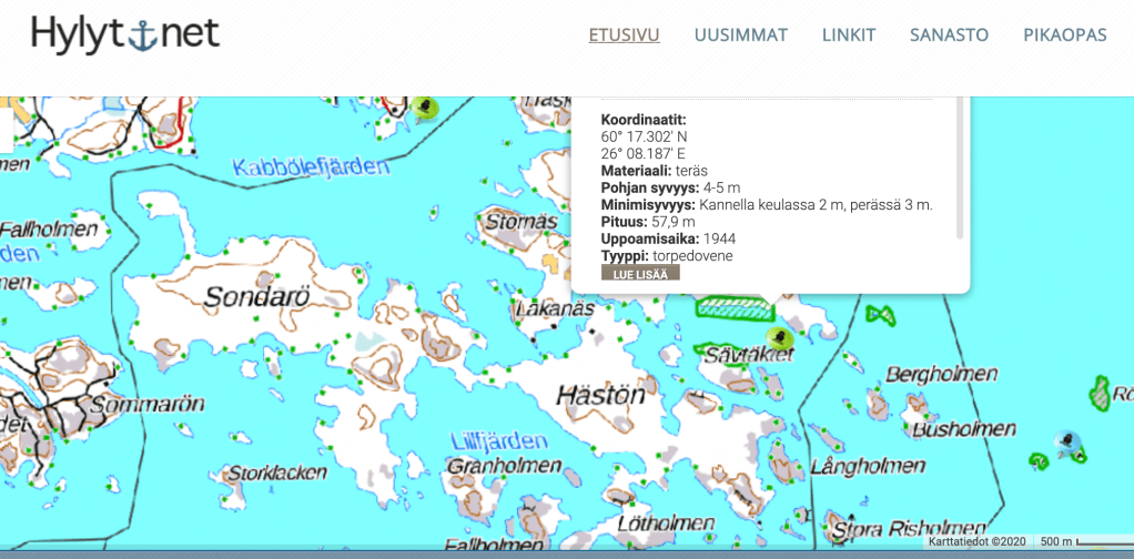 Hylkyjä ei aivan lähistöltä ole löytynyt, muttei tarvitse pitkälle tästä mennä, niin jo löytyy. Höstön koillispuolella on yksi, joka on tuohon merikarttaankin merkitty.