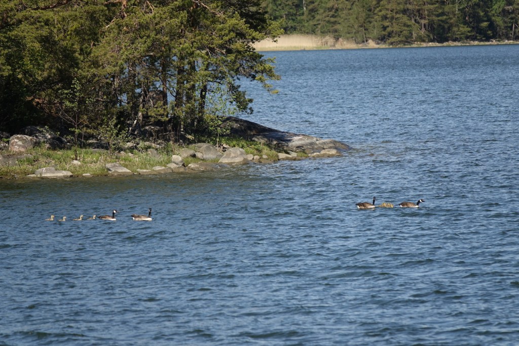 Uikku oli yksikseen, mutta hanhilla oli pesue mukana.
