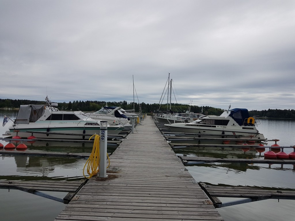 Puolipilvinen, ei kun pilvinen päivä, ainakin toistaiseksi. Ja täällä satamassa täysin plägä.