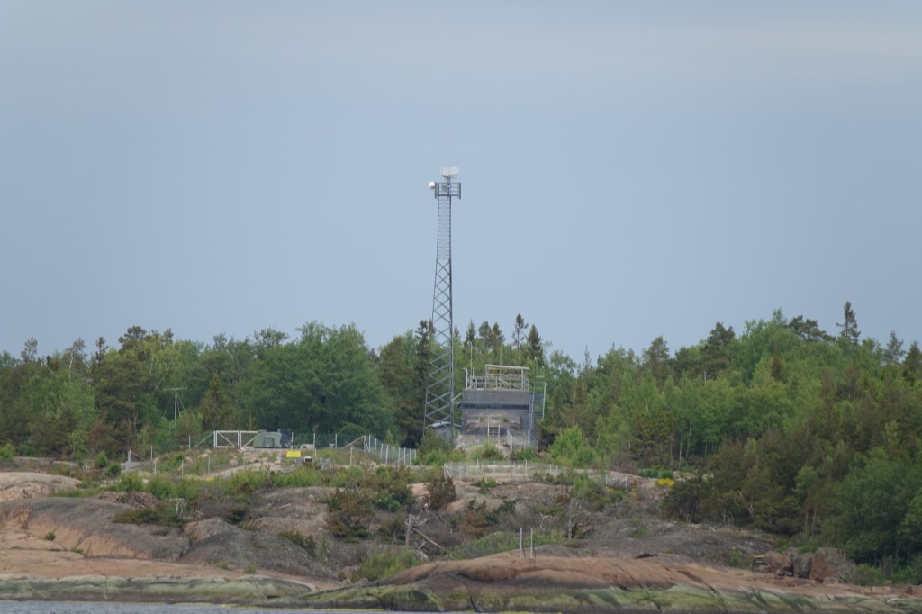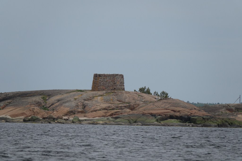 Luulin kauempaa katsottuna, että tykit siellä on, mutta taiskin olla vain valvontatorni? Mutta, kun suurensin kuvan näytöllä, olihan tuossa vasemmalla yksi tykki. Piippu käännettynä saareen päin.