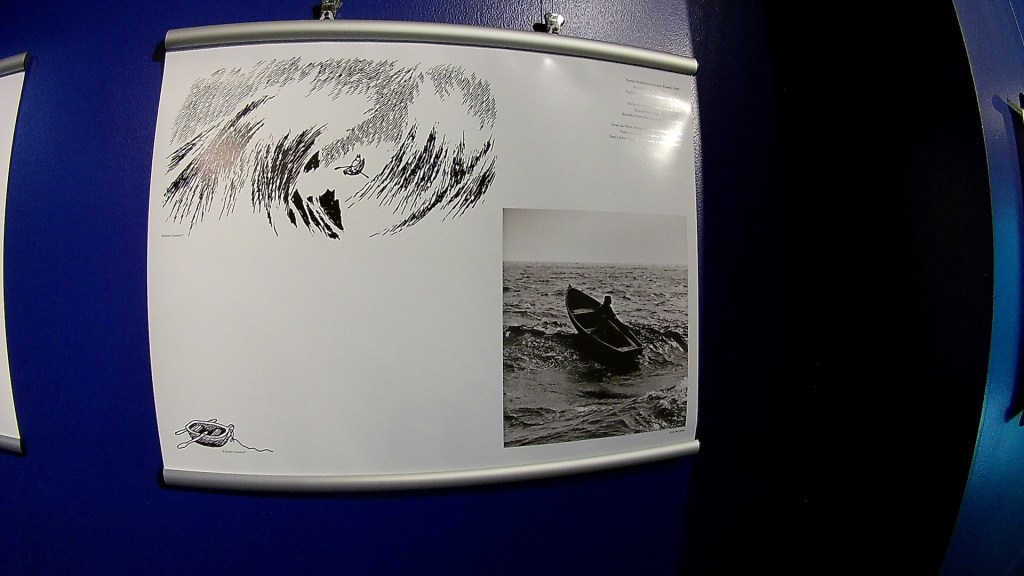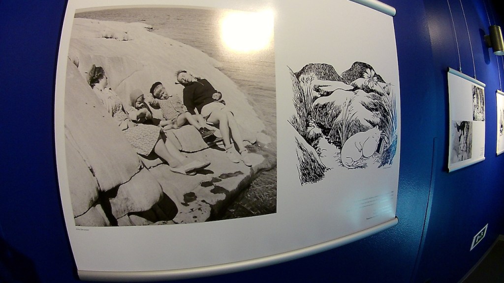 Tutkailtiin lähistöllä olevia katsomisen arvoisia nähtävyyksiä ja sitten molemmat muistivat nähneensä jostain, että täällä oli esillä jotain Tove Janssonin juttuja. Selvittelimme, että missä ja aika nopsaan internetin ihmeellisestä maailmasta selkeni niiden olevan aivan vieressämme, Maretariumissa.