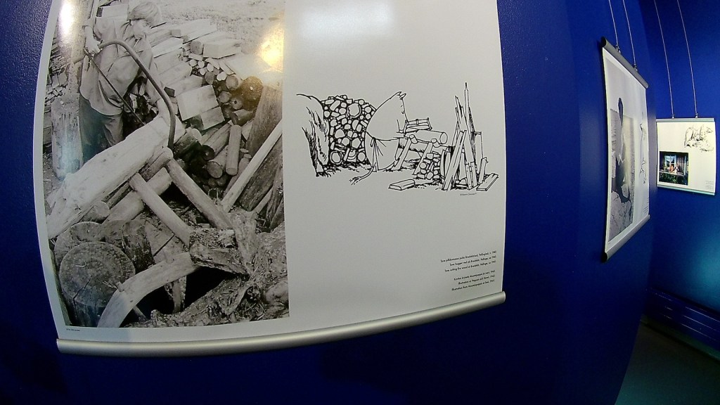 Eräässä salissa oli sitten niitä Tove-aiheisia tauluja. Vanhoja valokuvia, joista ilmeisemmin oli Muumikirjojen kuvituksiin saatu vaikutteita. Tai ainakin minulle tuli sellainen mielikuva.