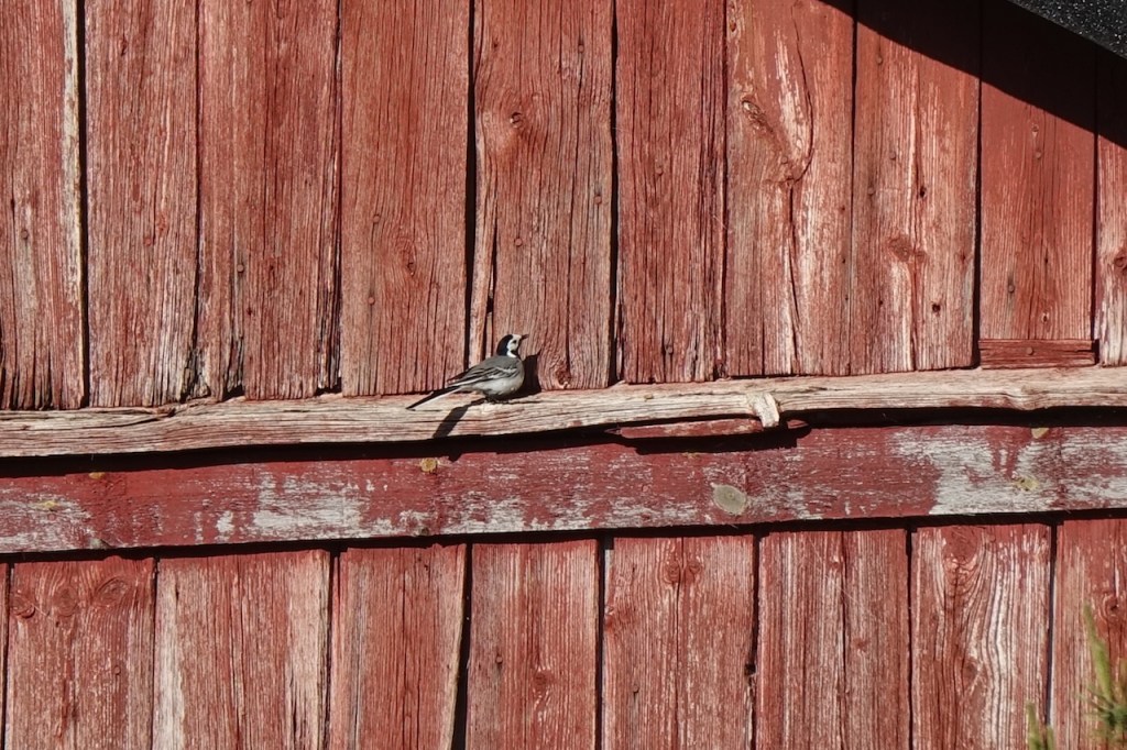 Västäräkki oli oivan paikan keksinyt pyydystää hyönteisiä. Se pyrähteli seinää pitkin useasti.