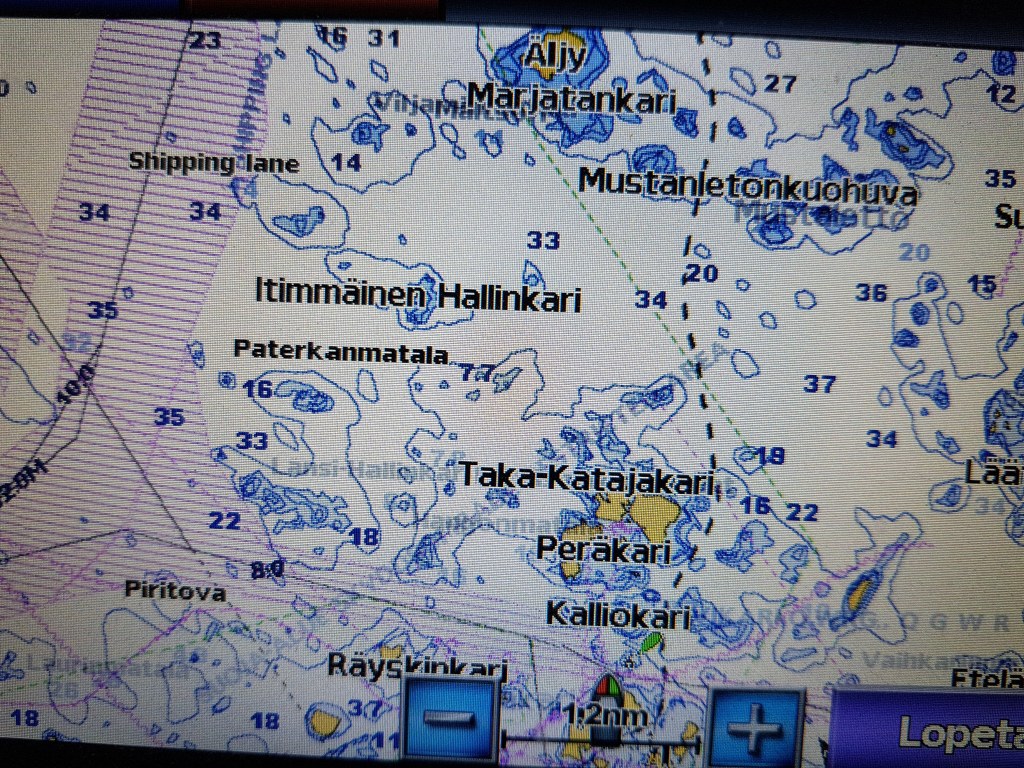 Tapanani on tutkailla merikortista, josko löytäisis vähän suoremman reitin, kun nuo viralliset väylät on tehty isoille kiuluille ja tarvitsevat leveämmät kohdat kuin meidän Sarza.